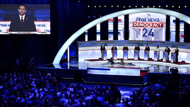 Participants: Doug Burgum, Chris Christie, Ron DeSantis, Nikki Haley, Asa Hutchinson, Mike Pence, Vivek Ramaswamy, Tim Scott